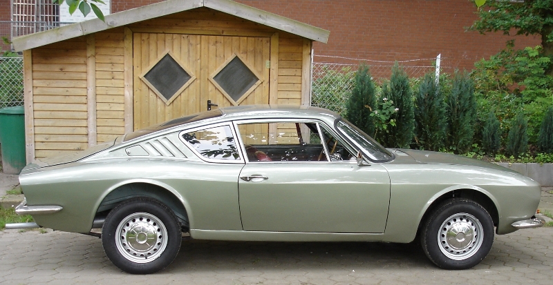 There are some minor changes on it, I don't know if he made them (the embossment on the bonnet, the extra reverse light, twin exhaust pipe...). The front grill is also different, but Jim wants to get the original one. The engine on the car is the 2,3 litre although Jim is not sure if it is the original.