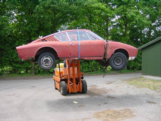 There is a lot of work to do as the car already had three colors. Although Rene just bought the car three weeks ago, he already started sanding the car starting from the doors. There are parts missing, so if somebody can help Rene locating them, he will be grateful. He needs the engine (the original engine was 2,3 liter), the front grill and the instruments.